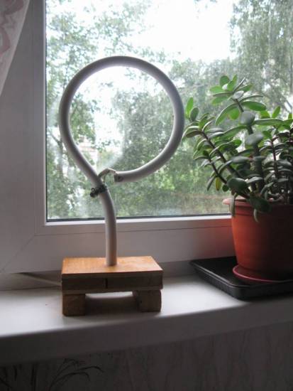 Для удобства в обращении с антенной: поиск ретранслятора и фиксация в нужном положении, её можно прикрепить на диэлектрическую рамку. Например, можно изготовить деревянное кольцо с подставкой, и прикрепить к ней нашу самоделку, — регулировать сигнал будет удобней.