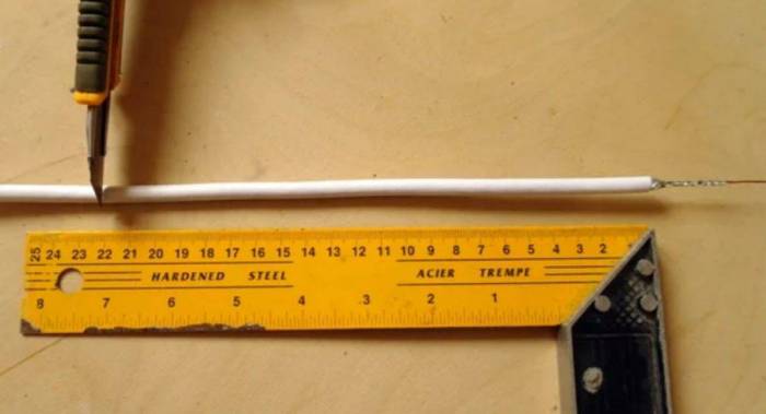 - Внутри провода следует зачистить. В качестве ориентира используйте двухсантиметровый задел.