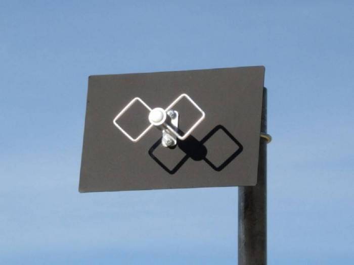 Такая телеантенна представляет собой комплект квадратов, выполненных из меди или алюминия, размещенных последовательно по одной оси. Она не рекомендована для случаев, когда точка приема находится на большом удалении от ретранслятора. Но зато фон, создаваемый другими источниками излучения, которых много в городских условиях, полностью блокируется. Основ изготавливается из дерева. Антенну поворачивают к рабочей вышке.
