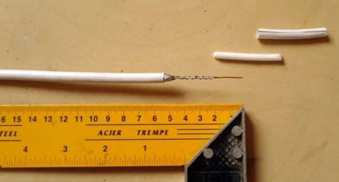 - 5см скрутки центральной жилы, экранирующей оплётки и фольги