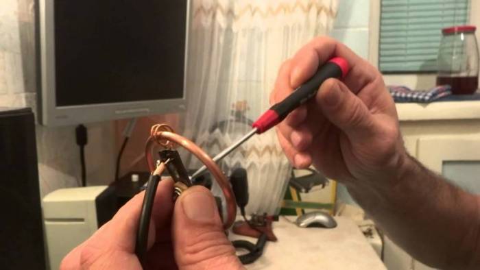 - После того, как изготовлен контур и подготовлен коаксиальный кабель антенны, следует соединить их вместе.