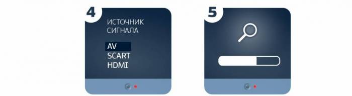 Шаг 4. В меню выберите требуемый источник входного сигнала: HDMI, AV, SCART и др.