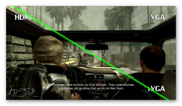 HDMI выводит более четкую картинку на экран. Связано это с тем, что графические адаптеры – цифровые устройства и лучше работают с таким же видеоинтерфейсом. При соединении VGA тратится больше времени на преобразование сигнала, из-за этого появляются потери. Кроме конвертации у VGA имеется проблема с внешними помехами, радиоволнами, например, из микроволновой печи.