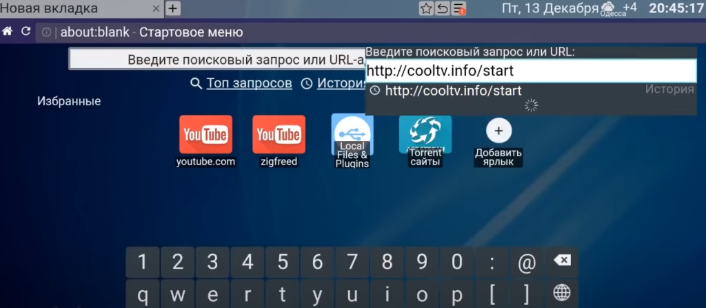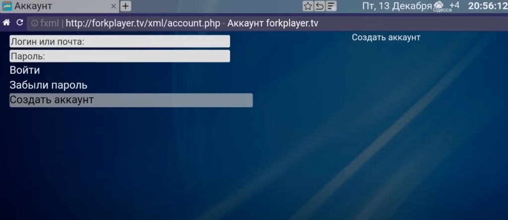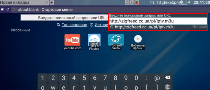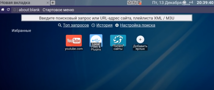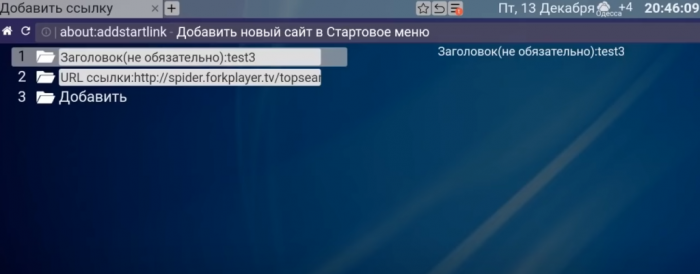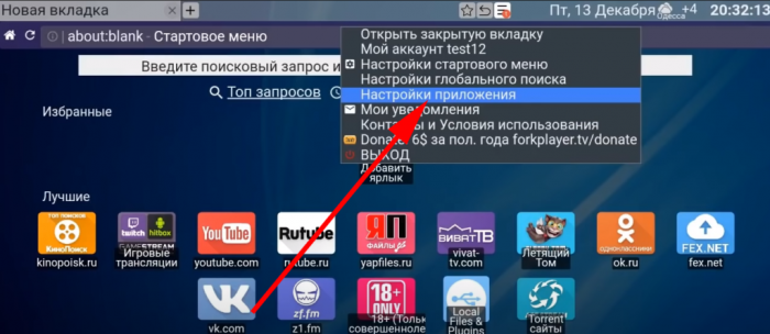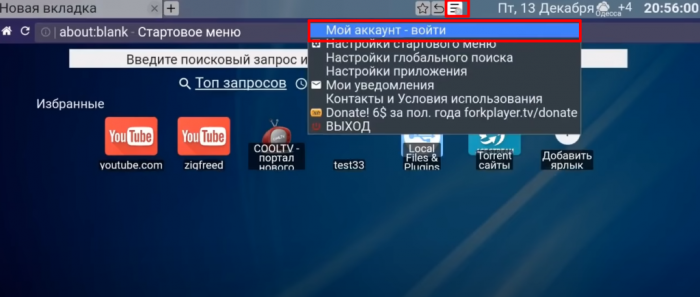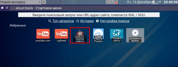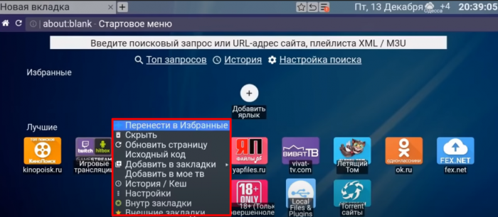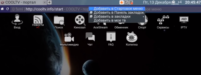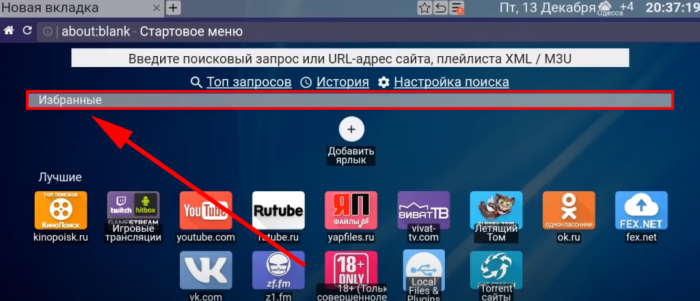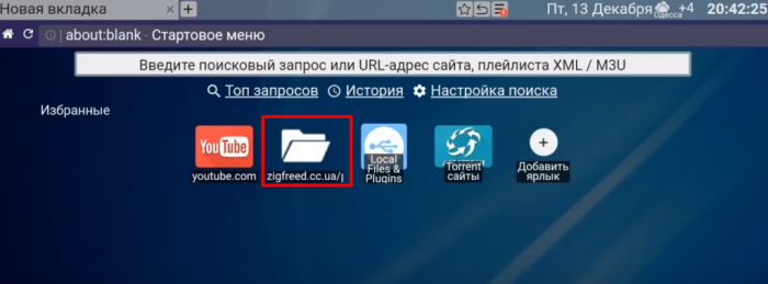 После выполнения описанных действий открывается стартовая страница Форкплеера. Ее можно добавить в закладки, чтобы каждый раз не повторять процедуру. Следует кликнуть снова красную кнопку пульта, переместиться на звездочку, нажать на нее.