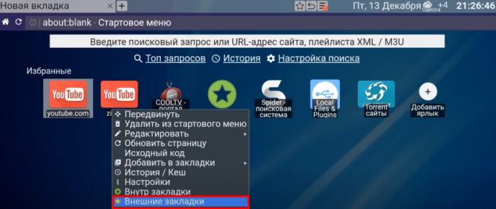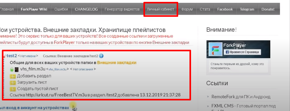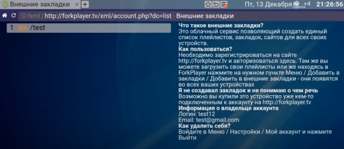 Внешние закладки в Форкплеере нужны, чтобы синхронизировать папки и плейлисты между вашими устройствами. Для этого используется аккаунт на forkplayer.tv