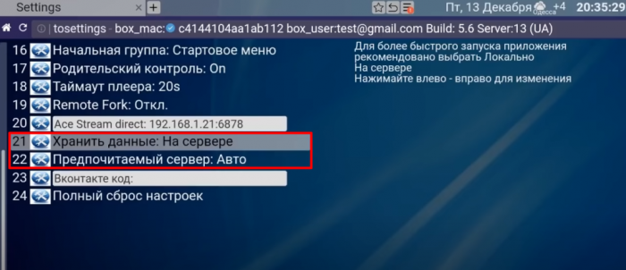 7. 21 и 22 пункты отвечают за то, где будут храниться все настройки, стартовый экран и т.д. Если пользуетесь Андроид приставкой или Маг Ауро, то храните данные на сервере, а если заходите в ForkPlayer через браузер, то сохраняйте информацию локально.