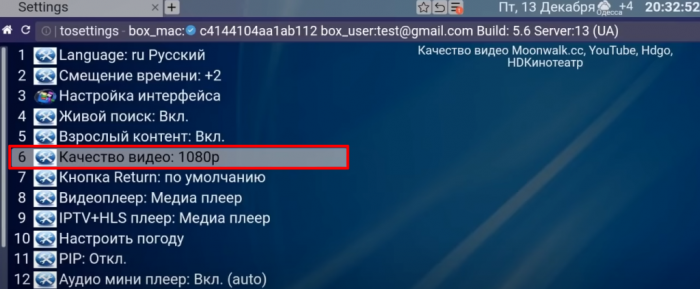 1. Нажмите красную кнопку на пульте, чтобы открыть Меню — Настройки приложения.