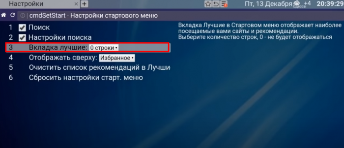 Можно настроить стартовое меню, добавив или удалив определенные сайты.