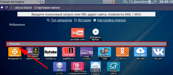 4. Для примера я перенёс YouTube. Чтобы скрыть раздел с «лучшими» сайтами, нажмите на надпись Лучшие.