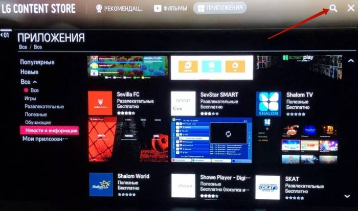 - Войти в магазин приложений LG Content Store (предварительно должна быть настроена учетная запись для осуществления покупок).