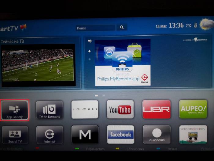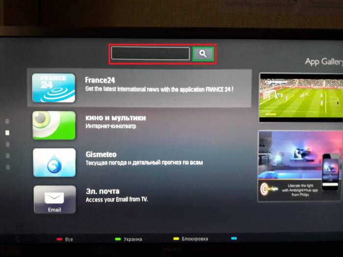 Окно магазина приложений в Смарт ТВ на телевизоре Филипс