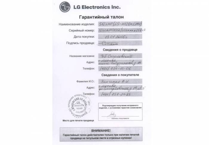 Гарантия производителя на территории РФ действует на бытовую технику, завезенную в РФ по официальным каналам и обладающую сертификатом соответствия стандартам России. Чтобы не стать владельцем нелицензированного устройства, рекомендуется внимательно присмотреться к отличительным знакам LG. Например, все официальные агрегаты снабжены специальным значком ЕАС или РСТ (последний размещен на устройствах, изготовленных в прежние годы).