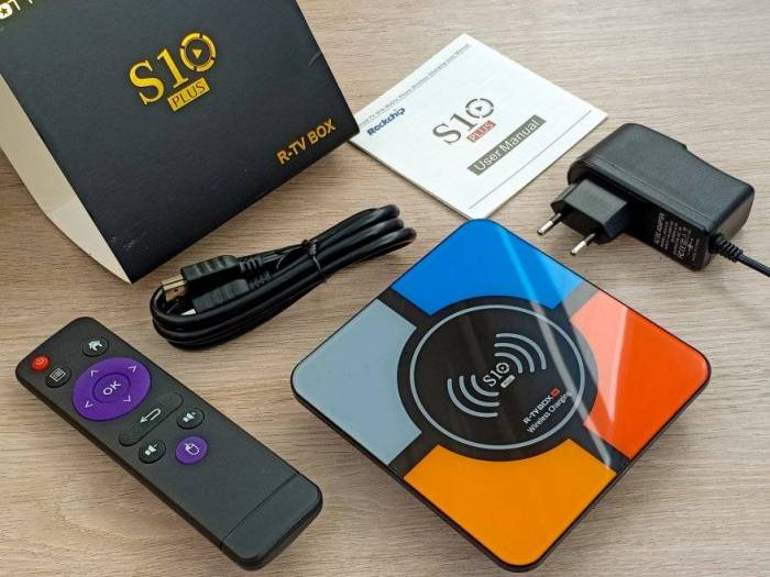 ТВ приставка R-TV BOX S10 выделяется по отношению к предыдущей модели более мощными техническими характеристиками. Здесь установлен восьмиядерный процессор Amlogic S912 и 2 Гб ОЗУ (есть версии с 3 Гб), 16 или 32 ГБ постоянной памяти, а также реализована поддержка карт microSD до 32 Гб.