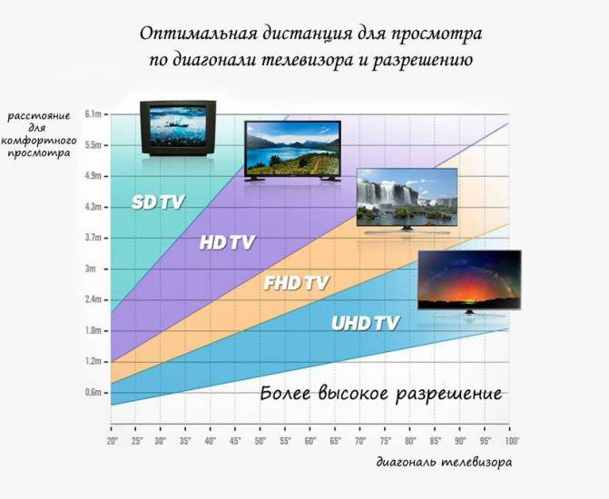 Оптимальное расстояние до телевизора при разных диагоналях: