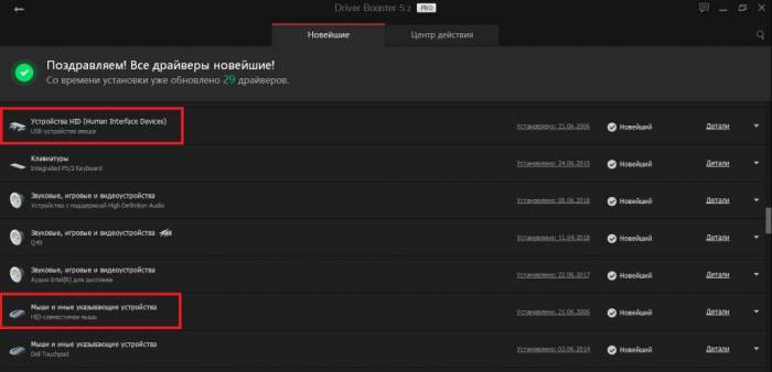 Не менее просто можно применять и утилиты, предназначенные исключительно для обновления управляющего ПО вроде Driver Booster, которые, правда, ищут и устанавливают драйверы абсолютно для всего оборудования, которое будет найдено в процессе начального сканирования, а не только для какого-то одного устройства, зато обращаются исключительно к сайтам производителей и разработчиков программного обеспечения, что исключает попадание на компьютеры вирусов или неработоспособность оборудования после установки необходимых пакетов драйверов. Кроме того, применение таких программ актуально и в том случае, если подключение мыши осуществляется посредством Bluetooth, когда может потребоваться обновление драйвера соответствующего беспроводного адаптера.