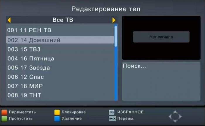 Теперь рассмотрим, как переместить каналы на цифровой приставке, если список уже был сформирован ранее. Сделайте такие шаги: