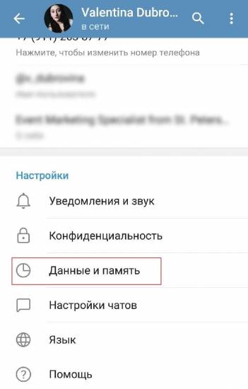 - Прокрутить меню вниз, найти пункт «Данные и память». Кликнуть по нему.