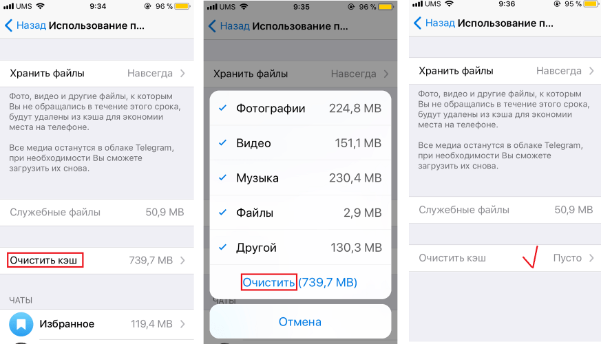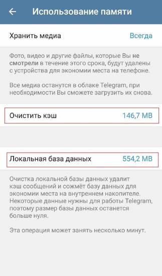 - Нажать под ней на надпись «Очистить кэш Telegram».