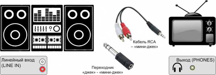 Подключение колонок к телевизору через магнитофон либо магнитолу