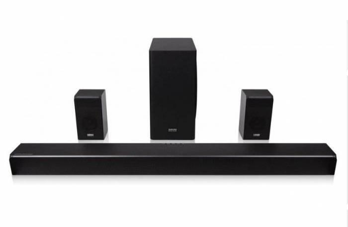 Самым дешевым из дорогих саундбаров корейского производителя является модель HW-Q70R. Это звуковая имеет высоту в 56 мм. Поэтому её можно без проблем разместить перед телевизором. Экран ТВ не будет загораживаться. Конструкция прочная, дизайн стильный.