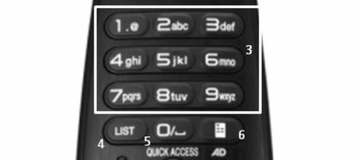 Далее идет цифровой блок. Здесь ничего пояснять не нужно, поскольку эти кнопки используются для перехода на конкретный канал и для реализации других функций ввода. А вот ниже есть кнопка LIST, обеспечивающая переход к списку сохраненных программ, «ноль» или пробел, а также AD для отображение виртуального пульта на экране.