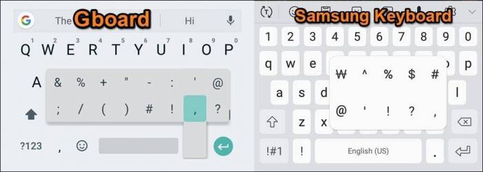 Gboard принимает более быстрое выполнение вышеуказанного процесса. Вам нужно будет нажать на клавишу периода и провести пальцем до нужного вам символа, не поднимая палец. Да, очень незначительные различия, но очень важные.