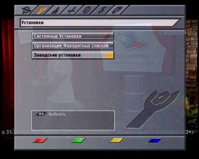 Алгоритм действий: кнопка меню -кнопка ОК, настройки — ОК, заводские установки — ОК, подтвердить сброс. Затем заново настроить каналы используя руководство пользователя ресивера Триколор.