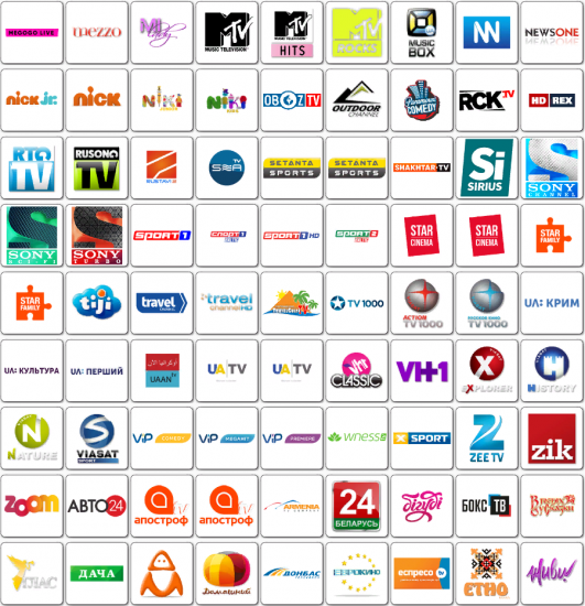 Список каналов плейлиста с российскими ТВ каналами в алфавитном порядке: