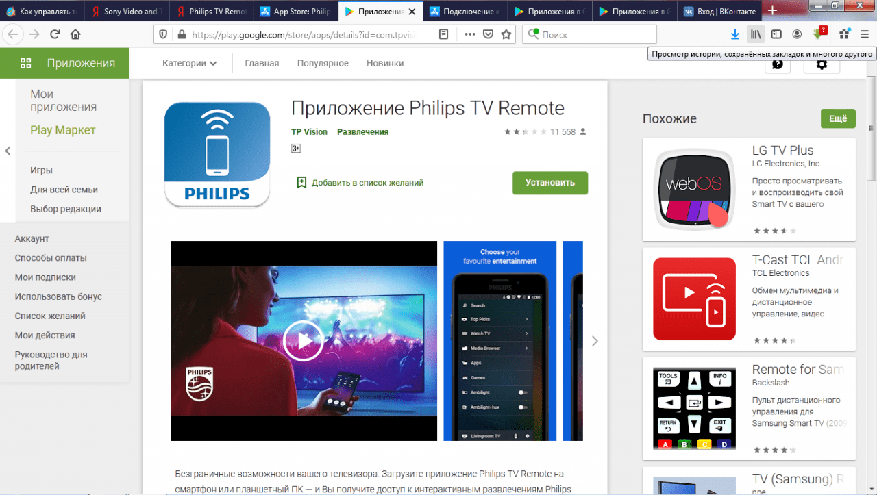 В отличие от рассматриваемых TV SideView и Video & TV SideView: Remote приложение от компании Philips получило крайне низкие оценки у пользователей и множество владельцев телевизоров Philips используют для дистанционного управления универсальные программы.