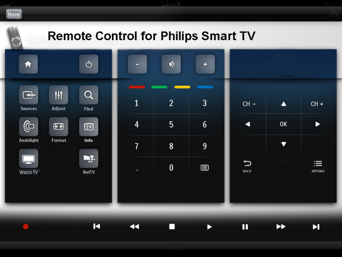 В отличие от компаний LG и Sony, разработчики из фирмы Philips решили создать собственное самостоятельное приложение — Philips TV Remote. Однако нельзя сказать, что это пошло программному обеспечению на пользу.