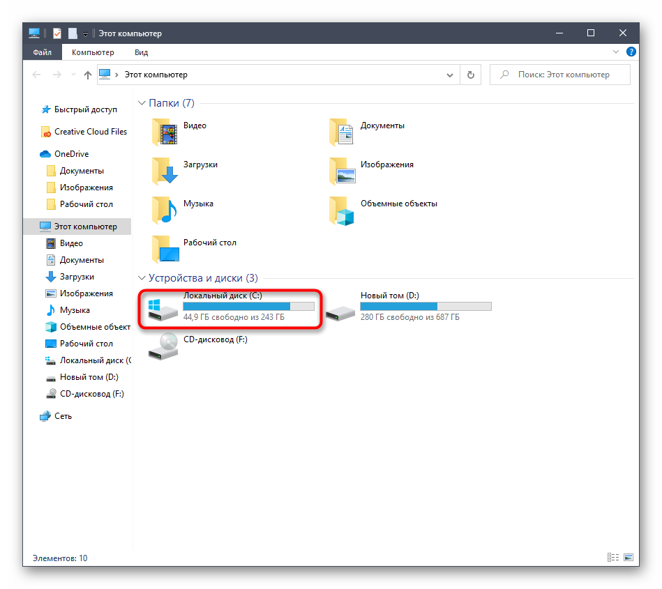 - Откройте Проводник и перейдите к системному разделу, куда обычно инсталлируются программы.