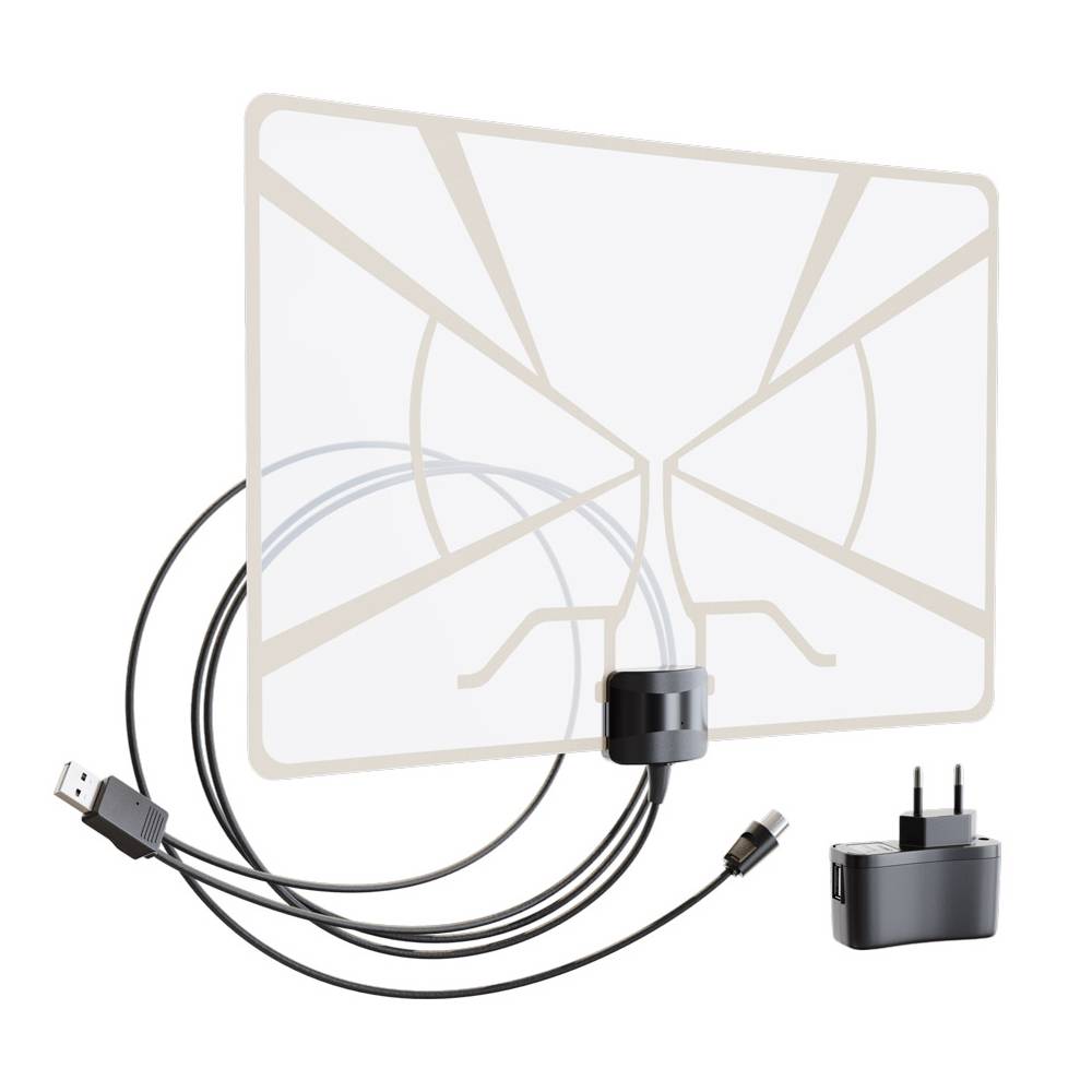 Это активные наружные антенны, которые используют дополнительное усиление для более качественного приема каналов. Для ее эксплуатации используется дополнительный небольшой источник питания. Стоимость антенны с усилителем на порядок выше, чем без него. Но за цену, приближенную к 40 долларам покупатель получает идеальное качество картинки и звука, отсутствие помех и прерываний сигнала. Стоит упомянуть, что недостатком является редкое проявление пробелов в вещании в определенных диапазонах каналов.
