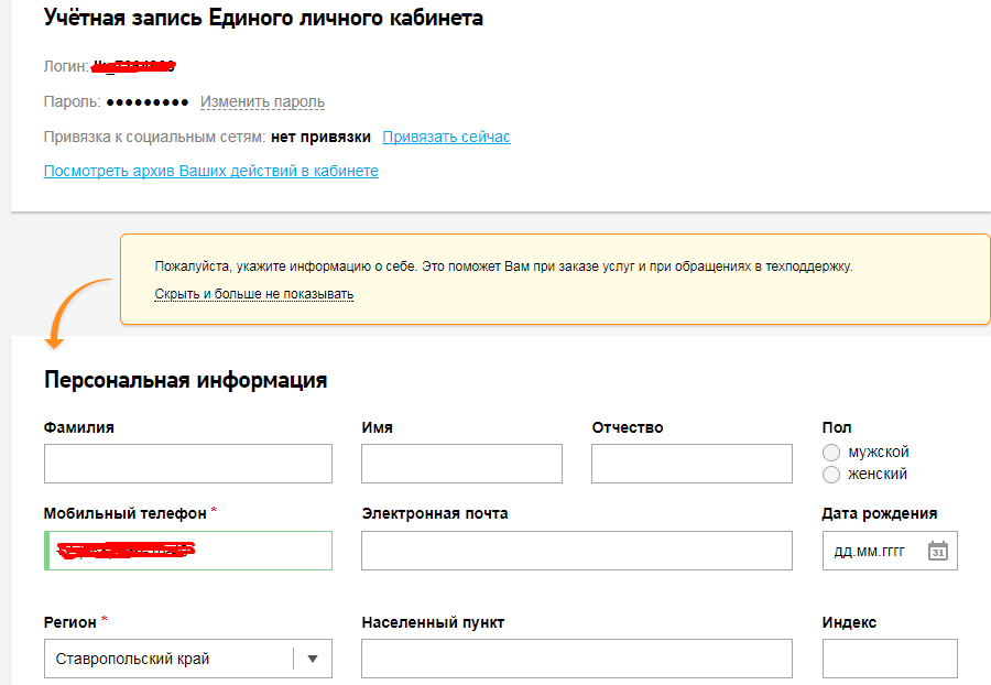 Для того, чтобы совершить вход в личный кабинет через телефон, необходимо, чтобы на странице персональной информации электронного кабинета был внесен актуальный номер. Подтвержденный после регистрации номер и будет служить логином для входа в ЛК. В случае необходимости подтверждение номера телефона можно произвести в ЛК в разделе «Персональная информация». Если хотите зарегистрировать в ЛК по телефону необходимо: