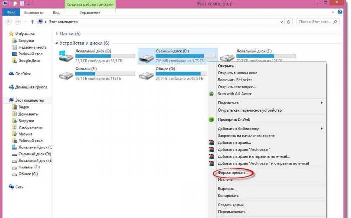 - Желательно перед проведением процедуры форматирования проверить флешку на вирусы. Удалите все заражённые файлы при помощи антивирусного программного обеспечения, если это будет необходимо. Рекомендуется проделать такую же операцию и с персональным компьютером. Это поможет избежать проблем не только с этими устройствами, но и с самим телевизором, куда мы будем немного позже вставлять эту флешку.