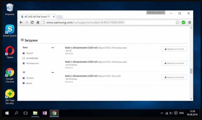 - Зайдите на сайт производителя вашего телевизора и на вкладке Поддержка найдите файлы прошивки для своей модели телевизора.