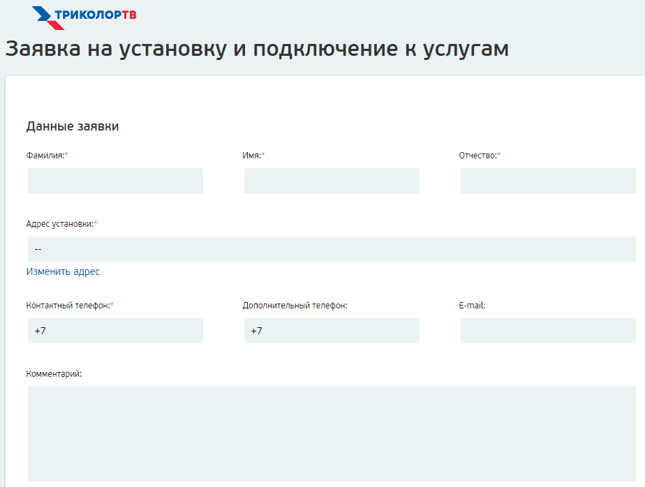 Для подключения данной услуги требуется оформить заявку непосредственно на портале tricolor.tv, а также приобрести комплект оборудования. Купить его можно в салонах оператора, в Центрах продаж либо у официального дилера.