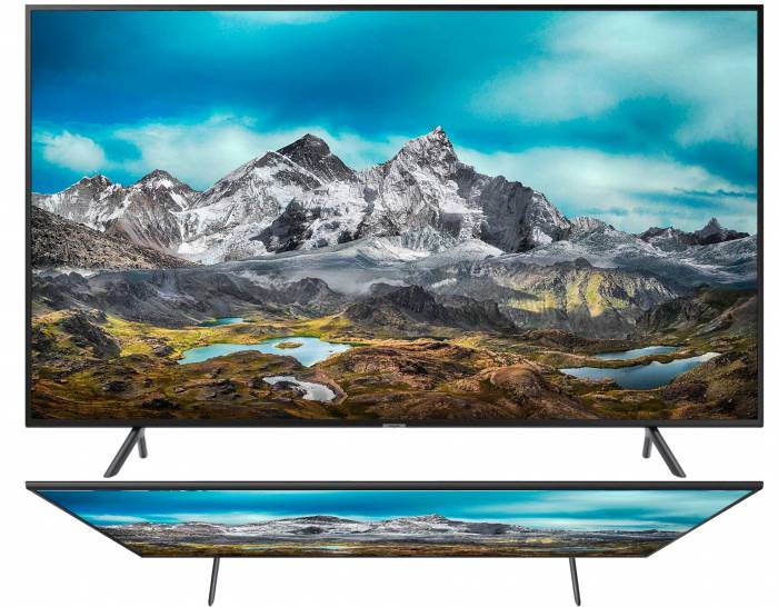 Модель 4К начального уровня. Время отклика TFT VA матрицы — 19,5. У нее хорошая цветопередача, высокая контрастность. Иногда экрану не хватает яркости, поэтому телевизор рекомендуется смотреть в затененных помещениях. Коммуникативные возможности представлены тремя разъёмами HDMI, 2 USB, объединенным композитным и многокомпонентным аналоговым входом, оптическим выходом. Smart TV работает на операционке Tizen с урезанными возможностями: например, устройство не поддерживает голосовой поиск. Хороший UHD телевизор с несколько завышенной стоимостью.