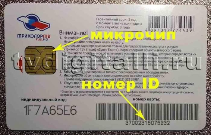 Карта доступа Триколор ТВ снабжена специальным индивидуальным кодом (ID-номером), который необходимо указывать при активации и подключении.