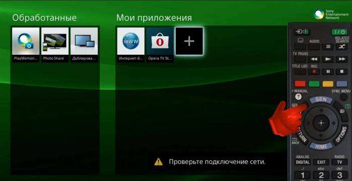Пропал набор приложений в списке программ, которые открываются с меню «SEN» и выборе с кнопки «+». После сброса настроек бывает, что телевизор долго обновляет список программ. Если каталог программ не появился — убедитесь в наличии интернета. Проверяется входом в интернет через веб-браузер со значком «WWW». Это встроенная программа и она присутствует всегда. При отсутствии работы проверьте еще раз наличие сети. При корректной работе браузера вернитесь к главному меню. С кнопки «HOME» войдите в «Настройки сети» и выберите «Обновление содержимого интернета».