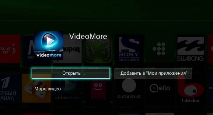 После выбора приложения появится подпункт «Открыть». Понравившийся канал можно добавить в «Мои приложения». После этого иконка выбранного приложения обоснуется в меню быстрого доступа.