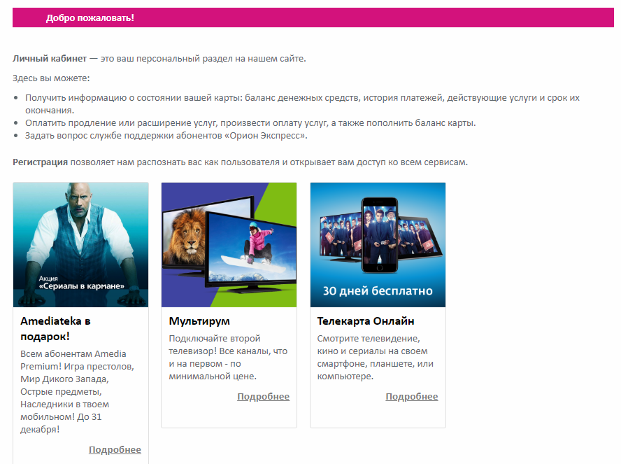 Незаменимым разделом на сайте для обладателей комплекта спутникового ТВ «Телекарта» является личный кабинет. Все его функции станут доступны только после регистрации.