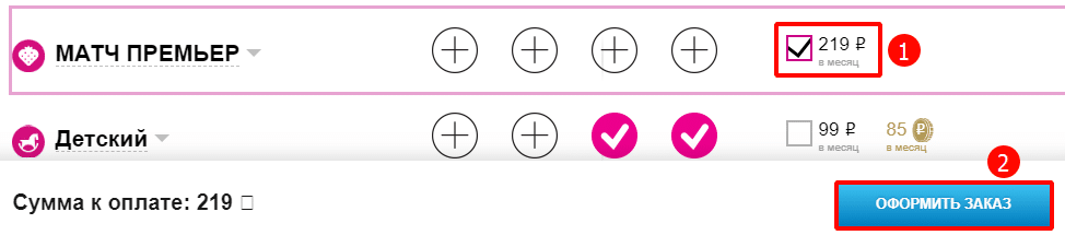 После выбора канала поставьте галочку рядом с обозначенной стоимостью услуги, и нажмите “Оформить”.