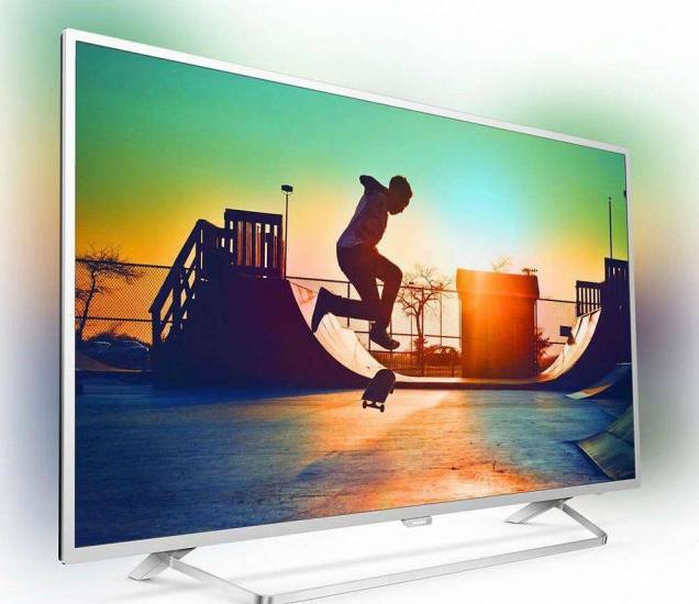 Тонкая рамка серебристого цвета вместе со стеклянной основой придает телевизору изысканный внешний вид, который впишется в любой интерьер. Надежная и удобная подставка не делает телевизор громоздким. Трехсторонняя подсветка Ambilight создает эффект домашнего кинотеатра. Касательно качества изображения в данной модели следует отметить более высокую частоту обновления экрана (120 Гц против 50-60 Гц во всех предыдущих), которая обеспечивает яркость (400 кд/м2) и довольно неплохую контрастность. Технология локального затемнения делает передачу черного цвета и его оттенков более точной и четкой. Управление Smart TV на базе Android стало еще удобнее благодаря новому пульту управления со встроенной клавиатурой. Мощность звука 45 Вт, чего достаточно для большинства пользователей.