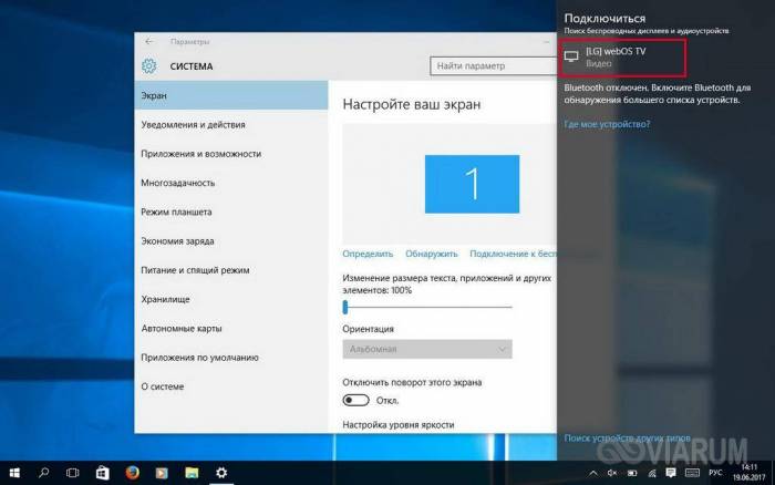 Теперь телевизор готов к подключению ноутбука, осталось только произвести необходимые действия в интерфейсе Windows 10.