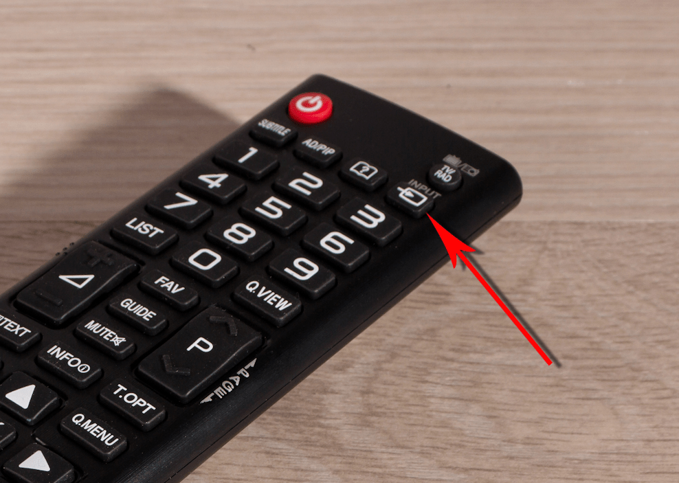 Для этого на пульте ДУ надо нажать кнопку, отвечающую за настройку источников сигнала (чаще всего она называется «input» и обозначается стрелкой, указывающей внутрь квадрата):