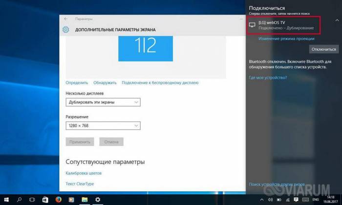 Иногда после выполнения перечисленных выше рекомендаций картинка все равно не транслируется. В этом случае причина может заключаться в том, что ТВ и системный блок не совместимы по своим параметрам. Например, для старого SD или HD телевизора разрешение FHD, установленное на видеокарте ПК, слишком высокое. В этом случае стоит войти в настройки экранов по приведенным выше алгоритмам и, выбрав второй дисплей (телевизор), понизить для него разрешение.