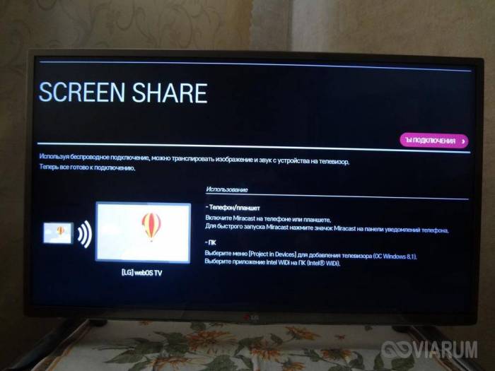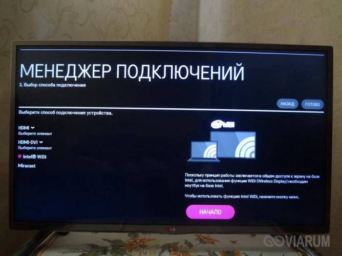 У каждой модели телевизора будет свое расположение инструментария WiDi. У LG последовательность действий для доступа к нему следующая: