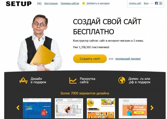 С примерами готовых сайтов можно познакомиться на виртуальной «Доске почета Setup