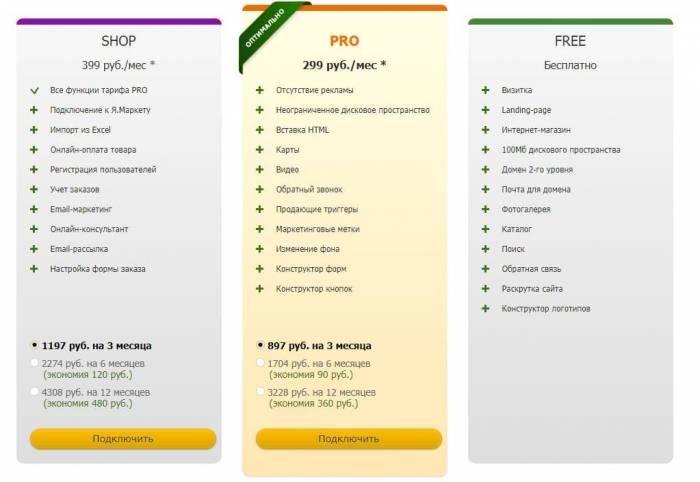 | Подключение доменного email | 297 р. | 297 р. | бесплатно | бесплатно |
