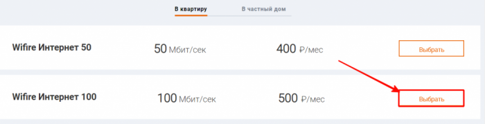 В списке выбираем тарифный план и нажимаем на кнопку “Выбрать”.
